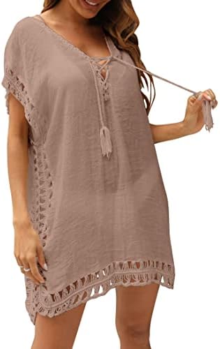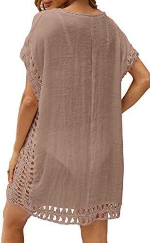 Womens Swimsuit Cover Ups for Swimwear Crochet Mesh Bathing Suit Coverups Bikini Dress Deep V Beach Covers