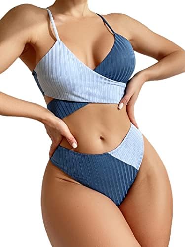 Material: This ribbed two piece bikini made of 82% polyester & 18% spandex, stretchy and quick dry fabric, comfy to wear