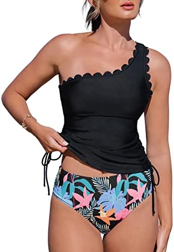 With adjustable straps, built-in bra cups, and shirring details, tankinis