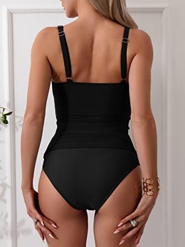 B2prity Two Piece Tankini Swimsuit for Women Tummy Control Bathing Suits Ruched Slimming Swimwear with Bottom
