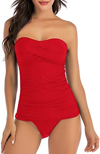 Sexy Tankini Top – Twisted ruffle top can accentuates your curves, slim your tummy.This bandeau top can worn as a strapless, x-back and classic straight straps halter top, which depending on your preference.