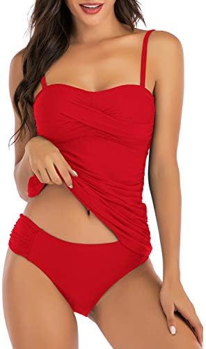 Womens Tankini Swimsuits – Tankini tops for women with soft padding, push up bra, wire free. Cheeky bikini bottom with chic ruched side, fully lined front and back. Superior in material and excellence in workmanship makes skin very cool in hot weather. Take one and show your unique style.
