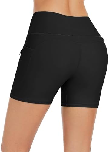 Bonneuitbebe Womens Swim Shorts 5” High Waisted Swimsuit Bottoms Quick Dry Board Shorts with Zipper Pocket