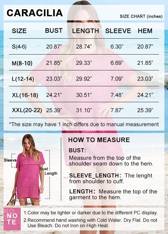 【Features】Swimsuit coverup for women are designed with a crew neck, short sleeve, loose fit, and hollow out, you can easily create a stylish chic look, the bikini cover for women doubles as a beach dress and cruise wear essential
