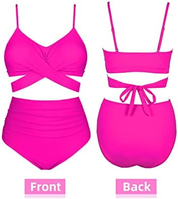 2 Piece Swimsuit for Women: Bathing suit tops for women designed with crisscross wrap straps, provide different ways of wearing for you – knot in the back or tie in front. Featuring adjustable spaghetti straps and built-in soft pads, provide comfy and perfect fit.