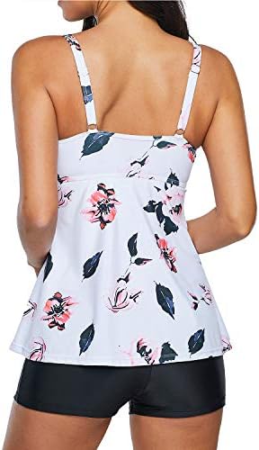 ☀Feature: Padded bra without underwire, adjustable straps, tankini swimsuit with boyshorts. Spaghetti strap, retro floral printed, sling design, sporty style, very chic and flattering. High elasticity perfect fit.