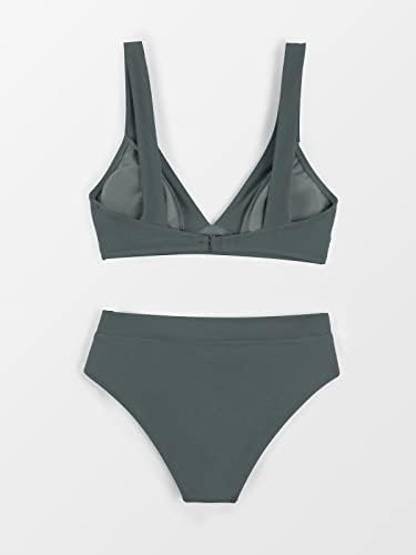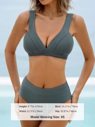 CUPSHE Bikini Set for Women Two Piece Swimsuits High Waisted Deep V Neck Back Hook Wide Straps