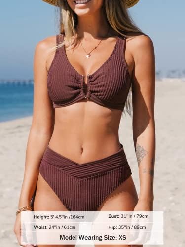 Design: Have an endless flow of happiness in this ribbed knit bikini set featuring a bralette with a scoop neck with V-wire, back hook, and wide straps, as well as a matching pair of cheeky bottoms with a V-front high-rise waist.