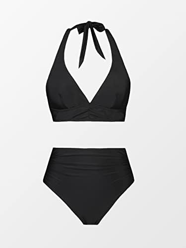 Design: This Women Two Piece Swimsuit Bikini Sets Features Ruching and Halter Design, with Tummy Control High Waisted Bottom