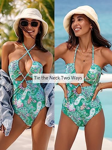 Design:Get ready to make a splash in this Colorful Cashew one piece swimsuit featuring a playful paisley print, flirty cutouts, and a trendy tunneled design – perfect for turning heads at the beach or pool!