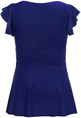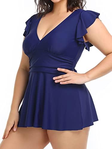 Design: Lightweight and comfortable tankini swimsuits for women. Flowy hem produce a flattering, slimming fit in this two piece bathing suit for women. The plus size swimsuits featuring with ruffle cap sleeves, v neck,and flowy hem, as well as a pair of bottoms with high waist and full coverage. Flowy tankini top perfectly covers the belly, which makes you look slimmer and produce a flattering in this two piece bathing suit for women.
