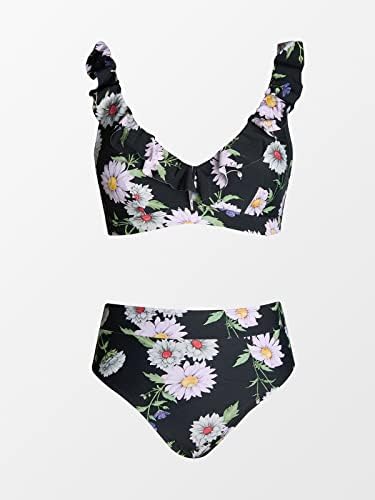 Design: The retro floral bralette is detailed with a ruffle v-neck and adjustable spaghetti straps. The matching bikini bottom has a classic high waist silhouette due to the widened band, making it a blooming and girly swim style. About cup style: with removable pads