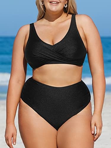 Design: Complete Your Beach Look with This Solid Plus Size Bikini Set in Special Shiny Fabric, Detailed with Wrapped Front and Adjustable Wide Straps. A High-waisted Bikini Bottom Piece for More Coverage