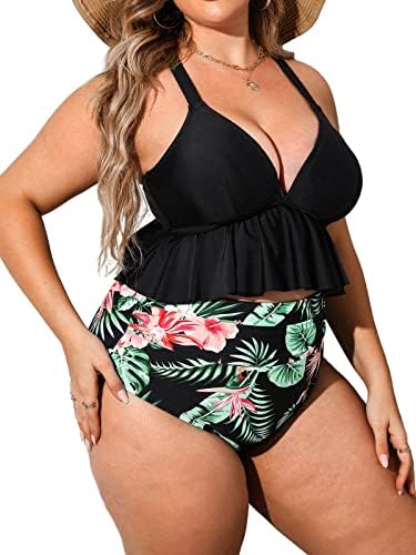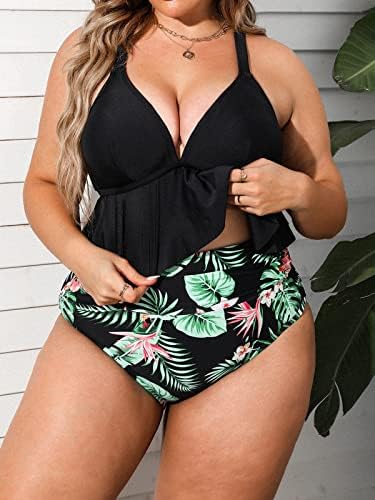 Design: A Perfect Staple to Add to Your Summer Wardrobe, This Plus Size V Neck Bikini Set with Two Different Ways of Straps and Flowy Ruffle Hem, While the Matching High Waisted Ruched Paisley Print Bottom Provides More Tummy Control. About cup Style: with Removable Pads