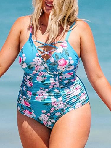 Design: Can’t Wait to Try This Plus Size Floral One Piece Swimsuit with Adjustable Wide Straps, Featuring Eye-catching Crisscross V-neck and Ruched Tummy Control Front. About cup style: with removable pads