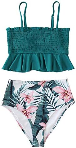 Tankini Bikini Set Women Ruffled Leaf Print Smocked