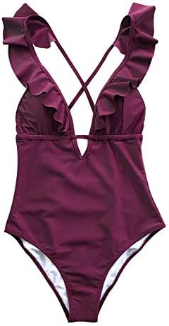 Design: Deep V Neck Bathing Suit, Ruffle Trims, Adjustable Cross Back Straps.