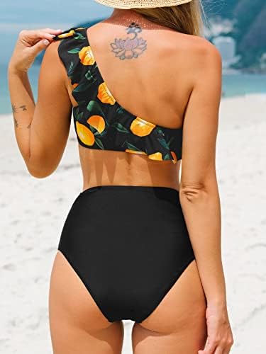 Design: Get ready for your next adventure in this bikini set featuring a top with lemon print, one shoulder design, and ruffled trim as well as a pair of bottoms with a ruched design and high waist. About Cup Style: with Removable Soft Cups