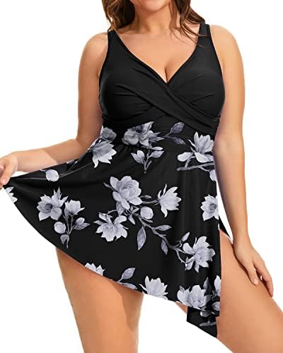 Plus size one piece swimdress for womenοΌOur plus size one-piece swimdress for women is the perfect choice. The twist front adds a touch of sophistication, while the asymmetrical hemlines provide coverage for your belly and create a slimmer silhouette.