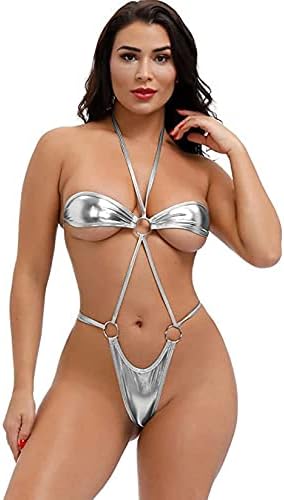 SIZE: One size fits all, fabric is very stretchy, suitable for plus size or petite size. Feel soft and comfortable, adjustable one piece swimsuit for women, self-tie bathing suit, summer PU leather micro bikini swimwear.