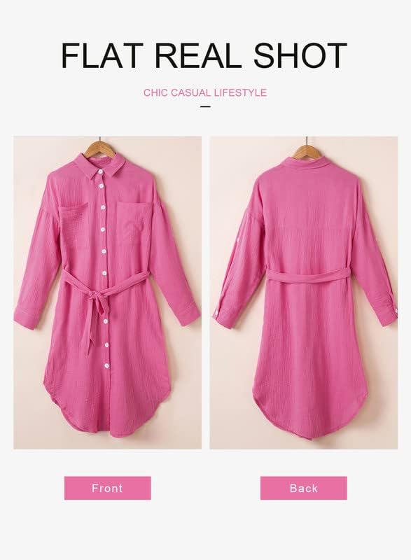 The cover up features long sleeve, button-down, deep pockets and loose fit. Simple design and casual style.