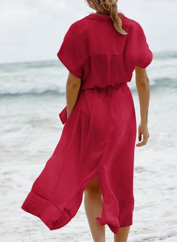 With short sleeves, a button-down front, and split hem, this cover up is easy to pair and a must-have addition to your summer wardrobe.