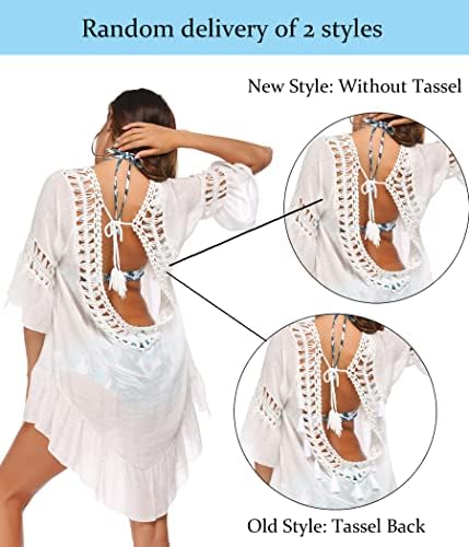 BEAUTIFULLY HANDCRAFTED: This bathing swimsuit cover up for women features a handmade lace crochet v-neck, cutout short sleeves, a sexy open-back design, and pretty tassels. Show off your unique and charming fashion. Wearing it will make you exude more charm.
