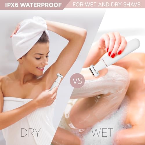 VERSATILE USE: Designed for both wet and dry use, the electric shaver for hair removal can easily be used in the shower with an IPX6 waterproof rating. The washable and removable heads are easier to do effortless cleaning and maintenance.