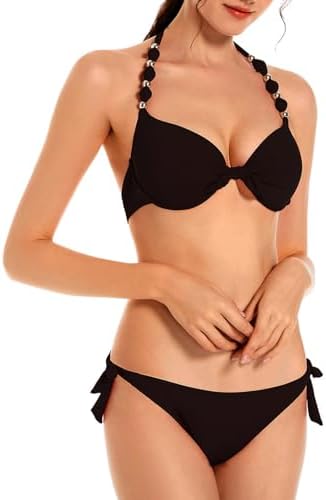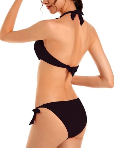 Women’s Bikini Set Removable Padded Bikinis Top Push Up Swimwear Halter Adjustable Tie Side Two Pieces Swimsuit