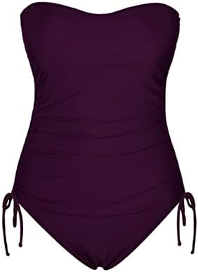 Slimming Tube Top Bathing Suit, features side drawstring design, free adjust the side tie to make the torso shirred gathering, flexiable fit by yourself, creates a flattering silhouette