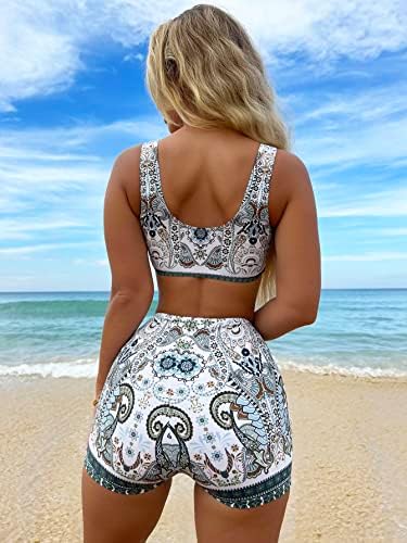 Feature: Paisley print, scoop neck, tankini swimsuit, 2 piece bathing suit