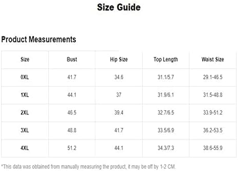 4X-Large Plus: Bust: 51.2″, Hip Size: 44.1″, Top Length: 34.3/7.3″, Waist Size: 38.6-55.9″