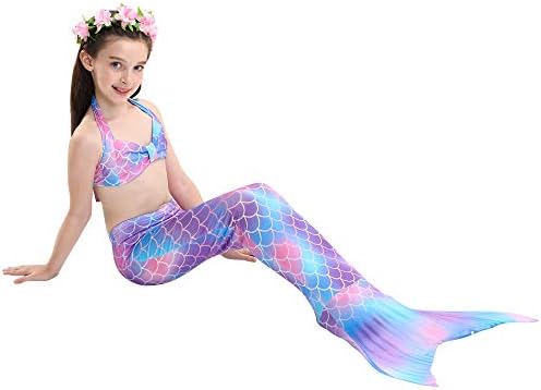 Colorful mermaid tail for swimming (without monofin): Mermaid Tail + top + underwear headband flower, the fish tail is elastic, can fit easily. It is good present for little girls kids from 3-12 years old, great for performance, mermaid swimming role play, masquerade, surfing, beach, bathing and swimming, shooting, party birthday.