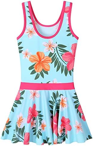 Girls Swimsuit One Piece UPF 50+ Floral Skirted Bathing Suit Modest Beach Swim Dress 3-11 Years
