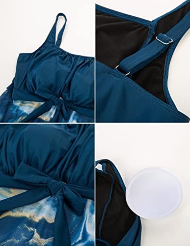 ๐ด 2 Piece Swimsuits :Tankini swimsuits with regular boyshort, high waist tummy control swimwear with Boyshorts, features with pleated design ,make you look cute and elegant; Flowy handkerchief hem looks like a dress ; Removable padded bra without underwire with adjustable shoulder straps and front tie give you enough breast support.
