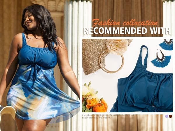 ๐ดSummer Swimdress Material: Womens plus size tankini swimsuits is made of 82% Polyester +18% Spandex, it’s breathable but not see through, light weight and quick dry characters makes your body more comfortable.