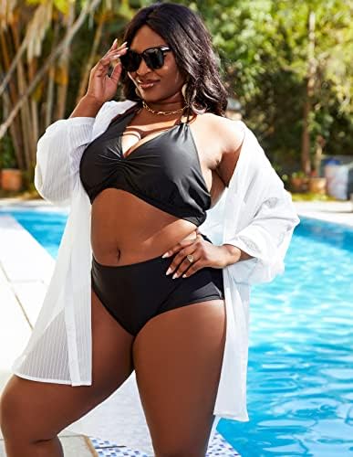 ๐Ÿใ€Fashion Designใ€‘Plus size swimsuit cover up features in roll-up cuffed sleeves, and it gives you long sleeve or 3/4 sleeve design. Button down design, you can dress it up or down, and can be worn as a coverup or casual shirt dress, stylish, trendy, classic and chic.
