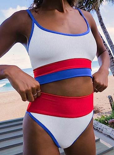 The sexy swimwear features high waist, striped print, color block and adjustable straps design.