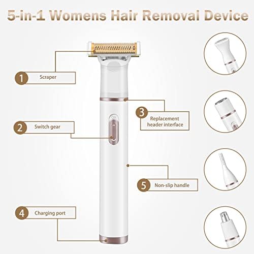 Hicdaw Electric Razors for Women 5 in 1 Bikini Trimmer Pubic Hair Face Shavers Nose Hair Trimmer Arm Legs Underarm Eyebrows Electric Trimmer (5 in 1 White A)