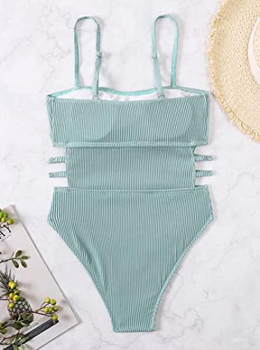 Ribbed One Piece Bathing Suit for Women Cut Out Side Swimsuit