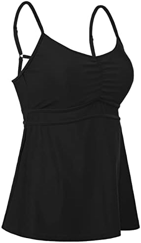 A chic and stylish swimsuit tankini top, featuring shirring detail on bust center, flowy swim top with the built-in, soft wireless molded bra cups, feel free and comfortable. Tankini plus size swimsuits for women.