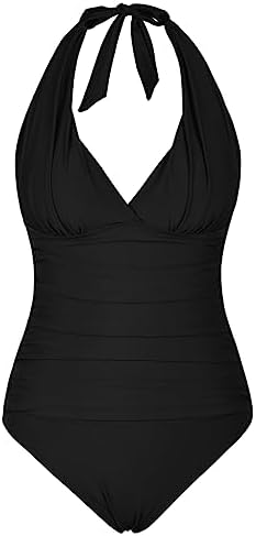Retro ruched one piece swimwear offer full bottom coverage; Plunging Deep V Neckline, sexy one piece swimsuit for women