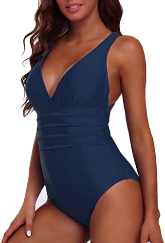 Hilor Women’s One Piece Swimsuits V Neck Tummy Control Swimwear Multi Strap Cross Back Bathing Suits