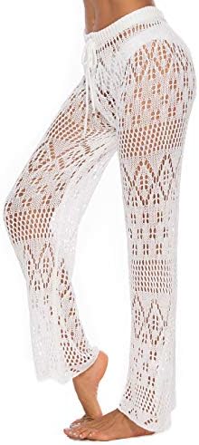 White Beach Pants for women coverup- White/S white swimsuit pants cover up-Waist: 26-27.6inch, Hip: 34.3-37inch, Length: 41.7inch.Soft lightweight beach coverup pants.