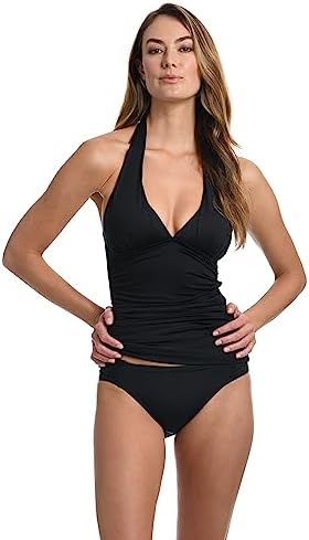 With adjustable straps, built-in bra cups, and shirring details, tankinis