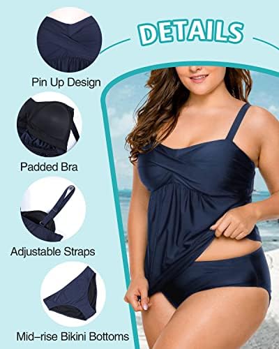 βΏNice Style — Plus size tankini swimsuits for women provides an amazing fit plus a full interior bra with molded cups to provide shape and modest support. No underwire give you more freedom.