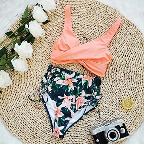 Features: Cross twist front and lace up tie at back, removable push up padded bra provide maximum support. tie side high waisted bikini bottom offers great tummy control. lace up tie two sides make you free to adjust the tightness.