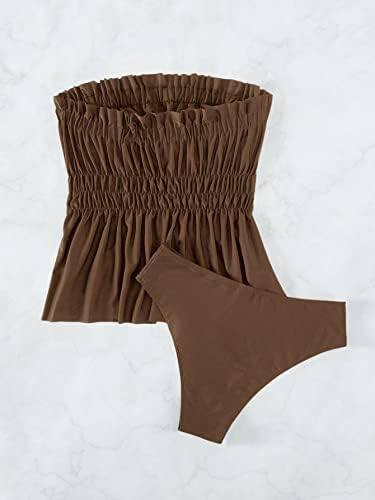 Feature: strapless, ruched, peplum tankini top, high waist bikini bottom, solid color, 2 piece set