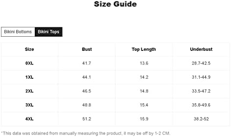 4X-Large Plus: Bottoms Length: 15.4″, Hip Size: 44.5″, Waist Size: 37.8-55.9″, Bust: 51.2″, Top Length: 15.9″, Underbust: 38.2-52″