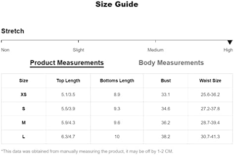 X-SmallโโBust:33.1″, Waist Size:25.6-36.2″, Top Length:5.1/3.5″, Bottoms Length:8.9″